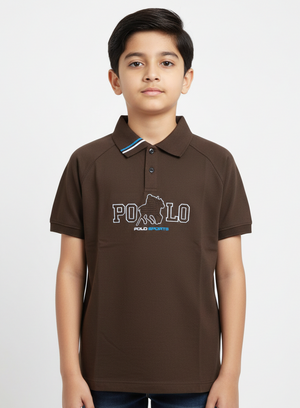 A Modern Portrait Of A Young Boy Wearing A Multicolored Sage Green Graphic Polo Shirt