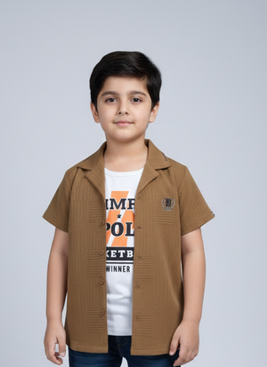 Subtle Textured Fabric: The outer shirt is crafted with fine vertical ribbing, adding a high-end feel to the casual aesthetic.