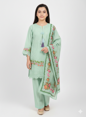 Floral Dupatta: Comes with a lightweight, flowing dupatta featuring a beautiful floral border that adds a pop of color to the ensemble.