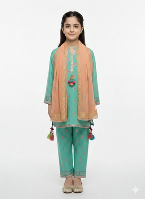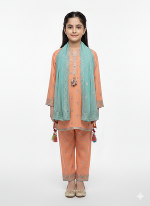Complete 3-Piece Set: Each outfit comes with a coordinated dupatta, featuring lace-trimmed edges or contrast borders to complete the ethnic look.