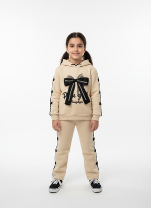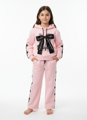 Give your little girl the perfect winter look with this soft and stylish fleece tracksuit, designed with premium imported China quality. This 2-piece set includes a hoodie with an elegant oversized bow design and matching trousers featuring side lace detailing for a trendy, standout look.