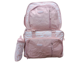 Bright, cute, and functional—our Pink 3-Piece Baby Diaper Bag Set is designed to keep you organized on the go. Includes a large storage bag, compact travel bag, and insulated bottle holder. Perfect for moms who love a stylish yet practical design.