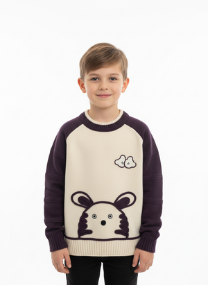 The sweatshirt comes in four beautiful winter colors — Red, Light Brown, Light Green, and Purple — giving you versatile styling options for both boys and girls. The ribbed neck, cuffs, and hem provide an excellent fit, while the high-quality stitching keeps it durable for everyday winter use.