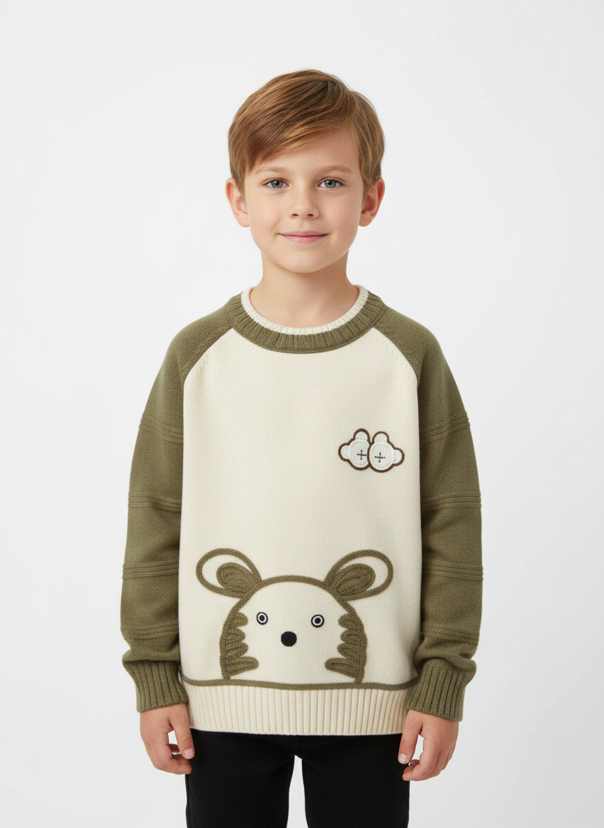 Upgrade your winter collection with this premium baby sweatshirt featuring a cute bear design on the front, made from the same soft and warm imported wool fabric you prefer. Specially designed for 1 to 4-year-old kids, this top offers maximum comfort, perfect stretch, and long-lasting wear.