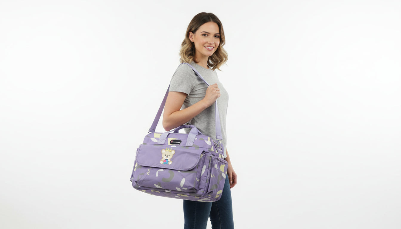 Stay stylish and organized with the Sunshine Baby Mother Bag, designed for busy moms who want convenience and charm in one. This spacious, multifunctional bag features a cute bear design on top, making it both practical and adorable. Perfect for carrying all your baby essentials with ease!