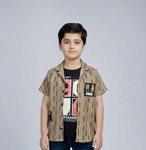 Trendy Boys' Dual-Tone Khaki and Black Graphic Layered Shirt for a Bold Urban Fashion Statement