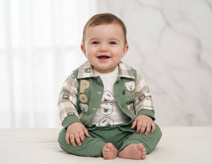 Turkey Imported Baby 3-Piece Set โ Bear Design with 1 Pocket (0โ12 Months)